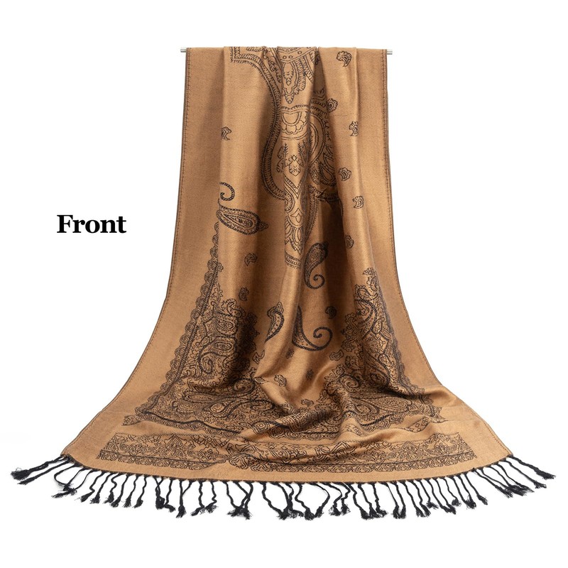 - 【Appropriate Size】The camel shawl is approx 79"*28" inches (200*70cm).including the fringe at two ends.This pashmina rave with fringe is large enough so that is perfect for you as a shawl, scarf,cape,blanket ,ponchos,evening cover and etc.