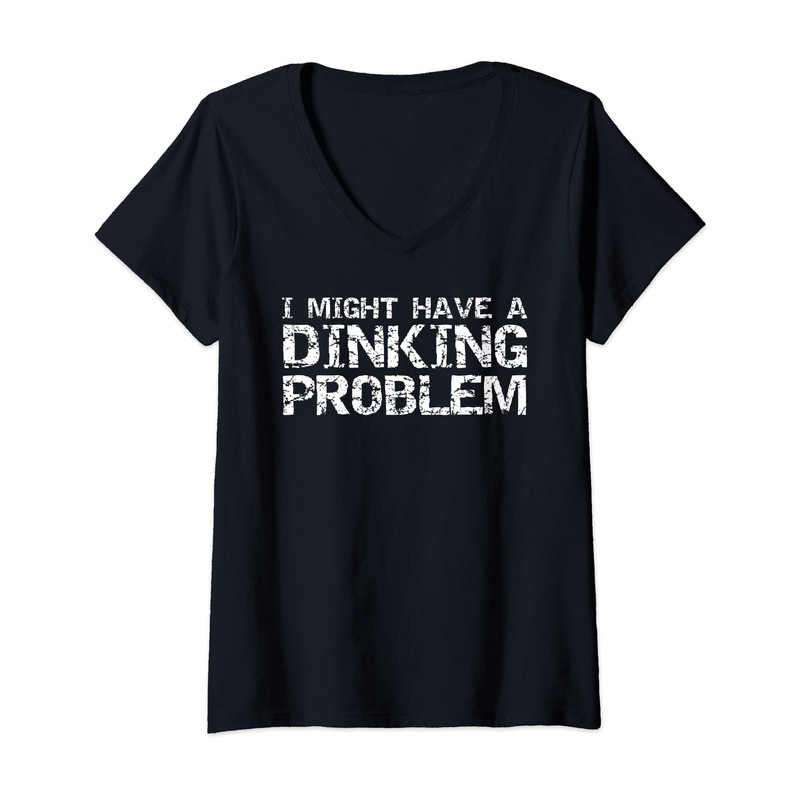 Womens Pickle Ball Pun Drinking Joke I Might Have a Dinking Problem V-Neck T-Shirt