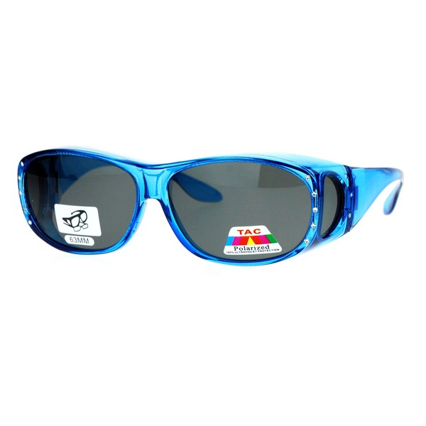 Womens Polarized Fit Over Glasses Rhinestone Sunglasses Oval Rectangular Blue