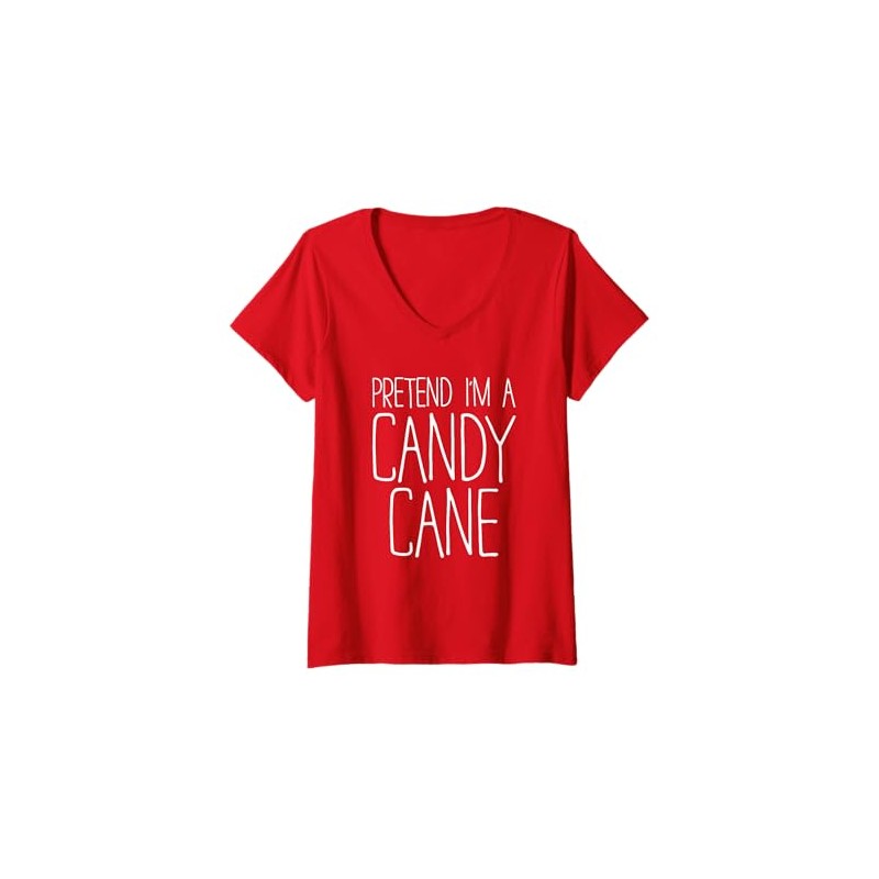 Womens Pretend I'm A Candy Cane Shirt Adult Kids Men Women Costume V-Neck T-Shirt