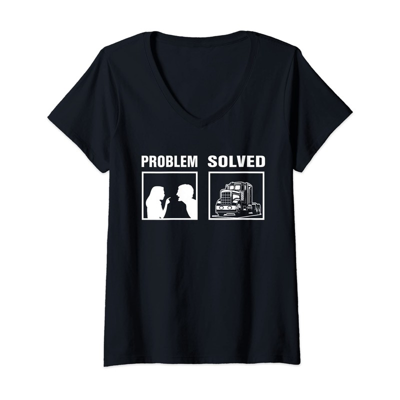 Womens Problem Solved Trucker V-Neck T-Shirt