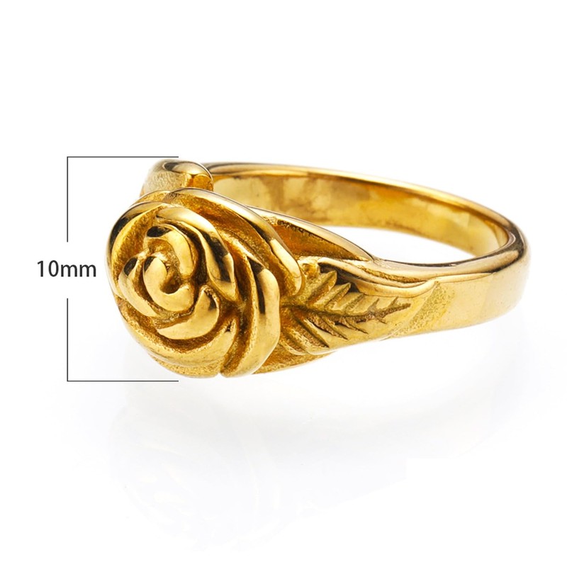 Womens Retro titanium steel Flower Rose Cocktail Party Ring (Golden, 6#)