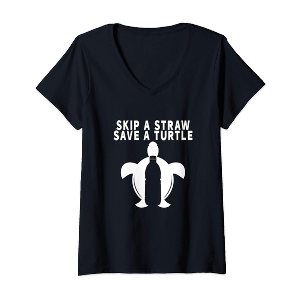 Womens Skip a Straw Save a Turtle V-Neck T-Shirt
