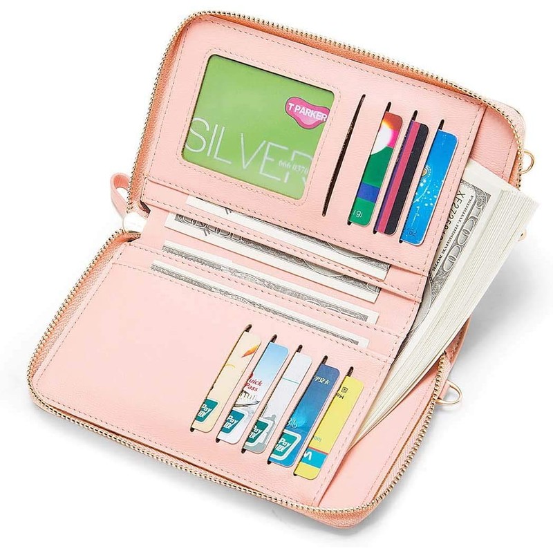 - đź’— This Crossbody wallet purse for women have multi pockets design and zipper,spacious room with snap on closure , can hold cellphone, passport, credit cards, keys, lipsticks, headphones, tickets, cash and classify your personal small items.You will not need to carry a bulk bag anymore as you have this crossbody phone wallet.