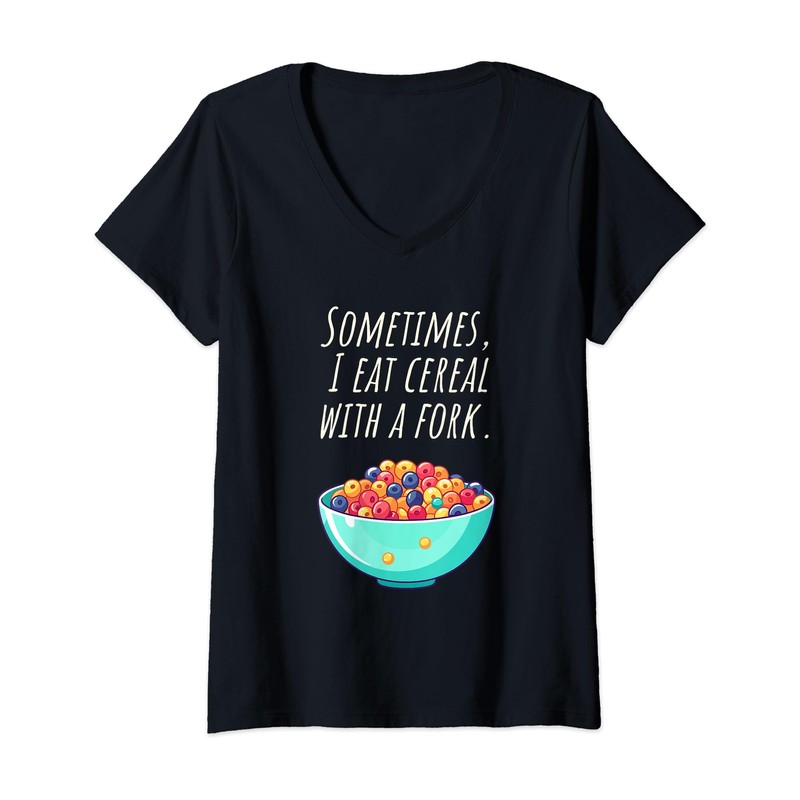 Womens Sometimes I eat cornflakes with the fork - Nonsense Fun V-Neck T-Shirt