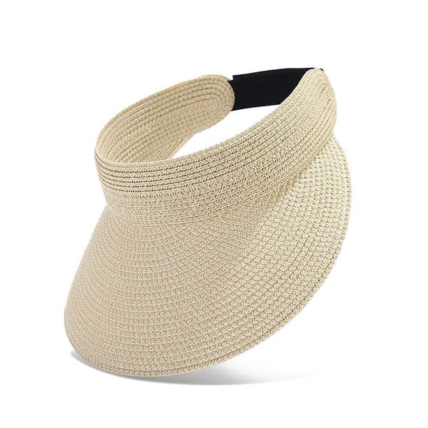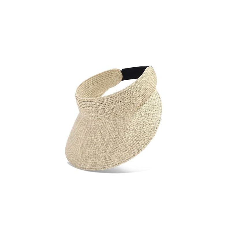Womens Sun Hat Straw Visor Cap Sun Protection Wide Brim Foldable Travel Summer Cap Beige