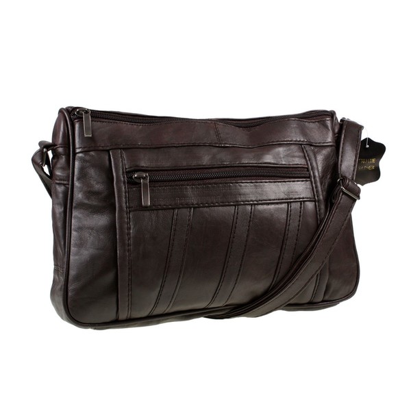Womens Super Soft Nappa Leather Shoulder Bag / Handbag with Two Main Zipped Compartments ( Brown )