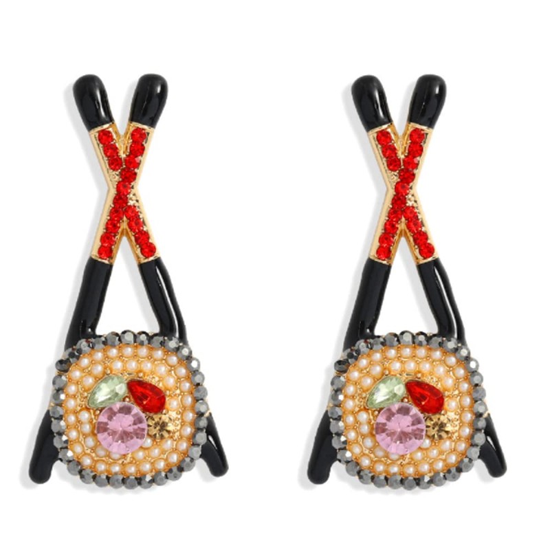 - ONE PAIR: SUSHI CHOPSTICKS designed earrings: beautiful rhinestones all over, they are eye-catching jewelry that you can easily mix and match outfits, trendy and luxury feeling to it. Beautiful geometric style which can fully show your personality