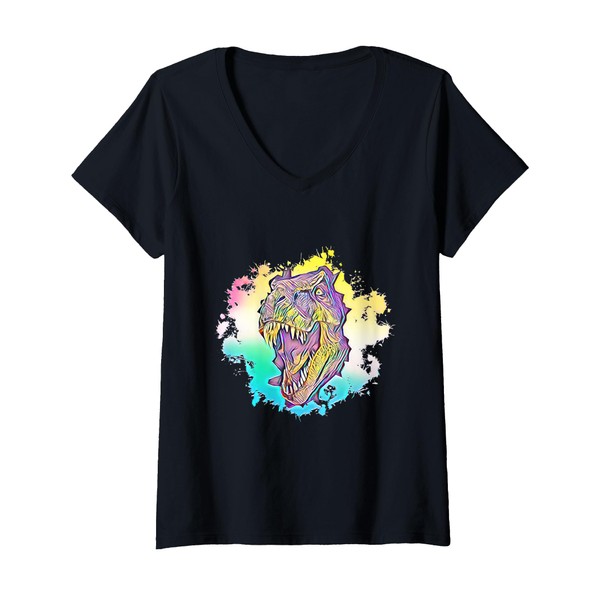 Womens Tyrannosaurus Rex Skull Motif Dinosaur prehistoric Predator V-Neck T-Shirt