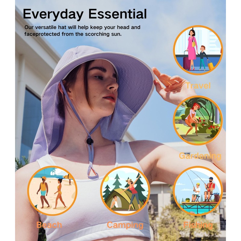 • đź‘’ADJUSTABLE DRAWSTRING: Adjustable chin drawstring for fixing the sun hat, especially in windy days. And another drawstring behind the fishing hat is for adjusting the hat circumference to make it most suitable.Especially, a ponytail opening in back is considerate design for women.