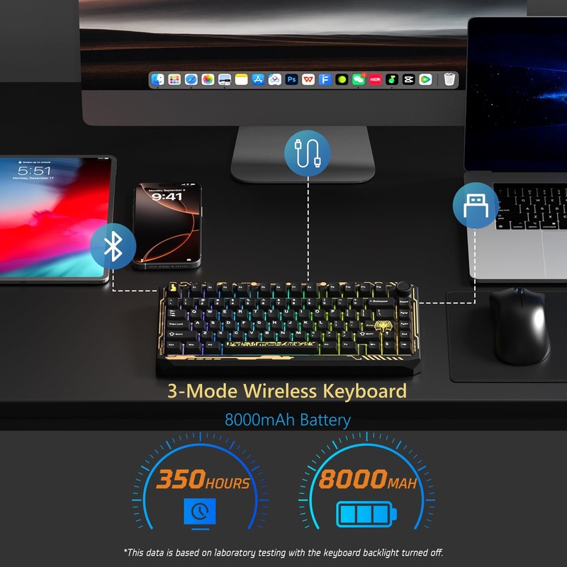 - 3-Mode Wireless Mechanical Keyboard Stable Connectivity & 8000mAh Battery: ERA75 wireless keyboard supports wired, Bluetooth, and 2.4GHz modes, you can switch effortlessly with simple key combos. Whether you're at your desk or on the move, enjoy stable. In wired mode, it delivers ultra-responsive 8ms latency and a 1000Hz polling rate, giving you the speed and precision needed for competitive gaming.