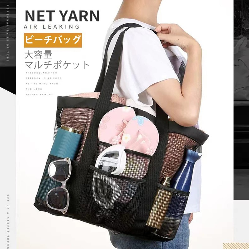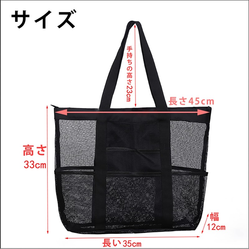 WOMLEX Pool Bag, Large Capacity, Mesh Bag, Beach Bag, Hot Springs, Swimming, Sea Bath, Bath Bag (Mesh, Black)
