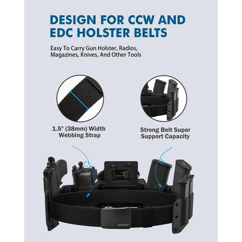 WONDAY Gun Belt Tactical Rigid EDC Stiff Heavy Duty Work 1.5" Battle Concealed Carry Belts Sturdy CCW 2-Ply Nylon Ratchet