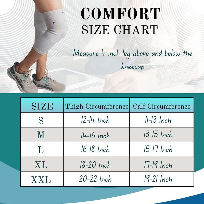 Wonder Care 1 Pc Bamboo Knee Sleeves for Men/Women, Support for Running, Gym, Badminton, Sports, Compression | Perfect Knee Brace for Pain and Enhanced Comfort - 1 Pc(XXL)