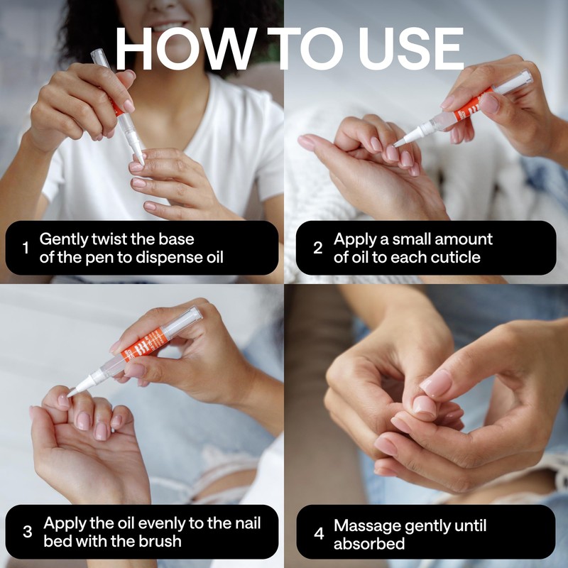 - NAIL OIL FOR GROWTH AND STRENGTH C This cuticle oil pen for nails acts as a dual-action nail growth oil and nail strengthener for thin nails and growth. The precise oil applicator helps deliver cuticle oil directly where needed, promoting healthier, stronger nail regrowth.