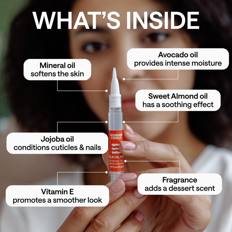 - CUTICLE CARE KIT WITH DESSERT SCENTS C Our cuticle care kit features 4 deliciously scented cuticle oil pens: brownie, carrot cake, vanilla ice cream & apple pie. Each cuticle oil pen for nails provides daily cuticle softener benefits and boosts nail care with essential nail vitamins.