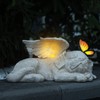 - Solar Powered LED Light: The puppy did not leave, just another way to accompany you; The LED Light solar statue is powered by solar energy and auto lights up at dusk and off at dawn