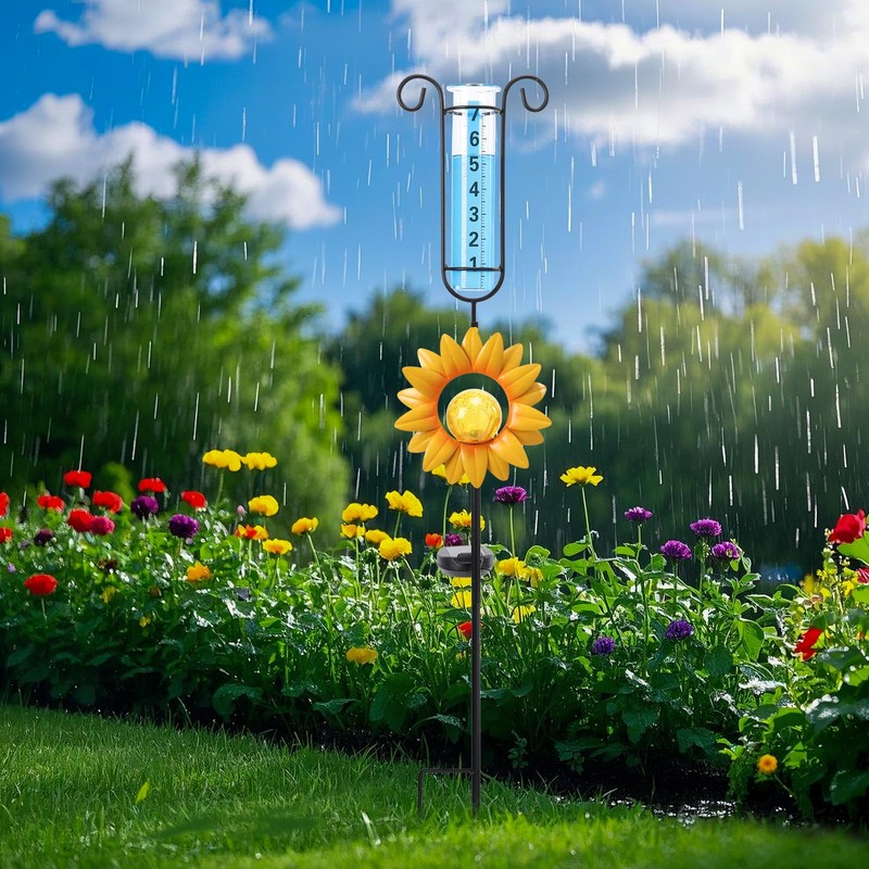 - {Perfect Gift} The sunflower outdoor rain gauge allows you to monitor the precipitation in your area, aiding in the meticulous care of your garden. This exquisite outdoor rain gauge is not only a functional tool but also a thoughtful and considerate gift for any gardening enthusiast