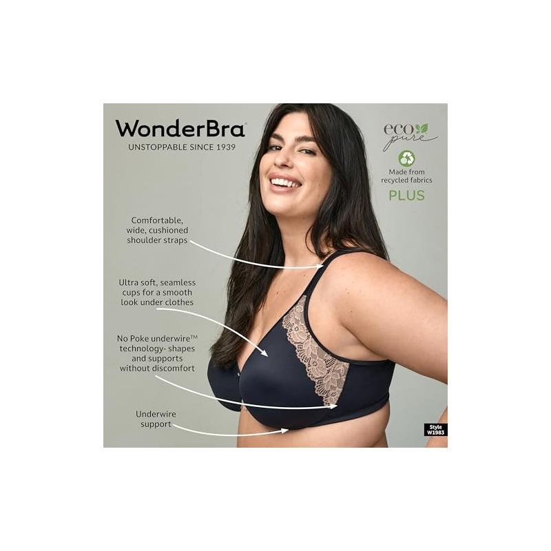 Wonderbra Plus Style - No Poke Underwire bras, Black, 42D US