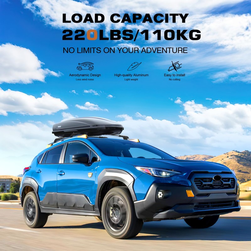 - 【Aerodynamic Profile Design】Car roof racks use aerodynamic profile makes it effective to minimizes drag and reduces wind noise.