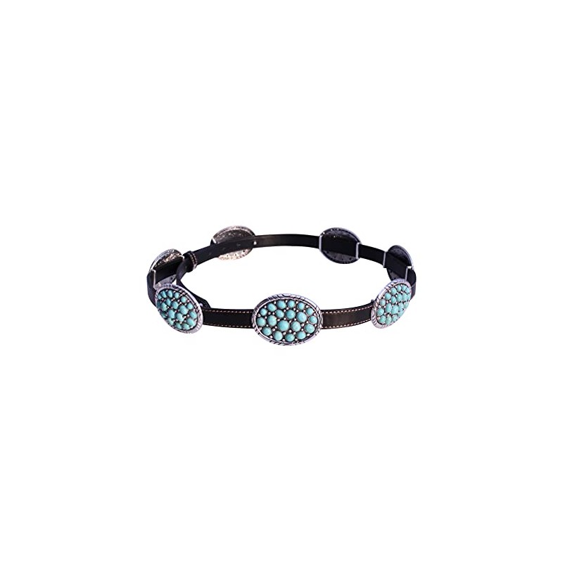 Wonderent Western Turquoise Bubble Metal Concho Leather Belt No.12 (Small, Black)