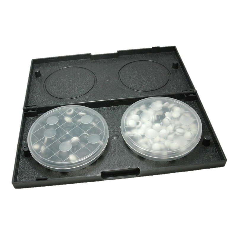 - The go stones come in a plastic case and can be stored inside a folded go board. Black 151 White 150 Total 301 Pieces