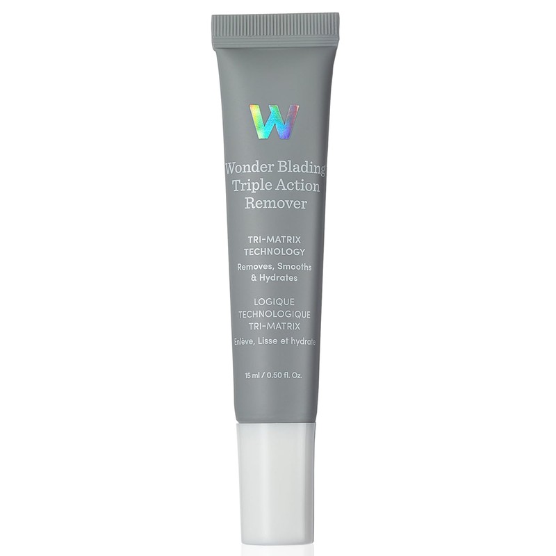 The Wonderskin Wonder Blading Triple Action Remover is the ultimate makeup remover, designed to gently and effectively eliminate our innovative Wonder Blading hyper-stain lip stain, as well as all other makeup, including stubborn waterproof makeup. Unlike traditional make up removers, this ultra-gentle formula instantly dissolves long-wear color, ensuring effortless removal without tugging or pulling. Infused with soothing plant extracts like aloe leaf, betaine, and allantoin, it works as a mascara remover and waterproof mascara remover, hydrating and nourishing the skin while melting away even the most resilient makeup. The non-irritating formula uses natural surfactants to cleanse thoroughly, making it safe for even the most sensitive skin. To use, apply a drop of the gel to your lips or any area where you want to remove WONDER BLADING makeup. Gently rub in the gel with your fingertip, wait 10 seconds, then wipe it off with a tissue or rinse with water. No oily residue—just soft, refreshed skin with no need for a second cleansing step. Plus, it's vegan, paraben-free, gluten-free, and cruelty-free, responsibly formulated with skin-loving ingredients you can trust. Whether you're removing a full face of makeup or just need a reliable waterproof makeup remover, this is your go-to solution.