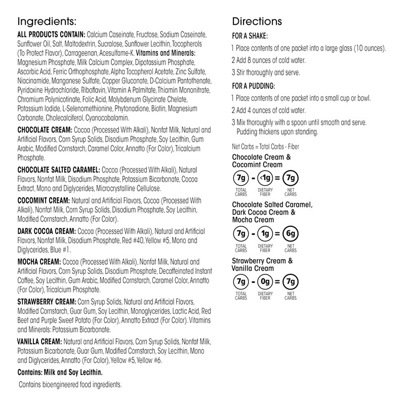 - Meal Replacement Shake: Packed with 15g of calcium caseinate protein, 24 essential vitamins and minerals, and 100 calories.