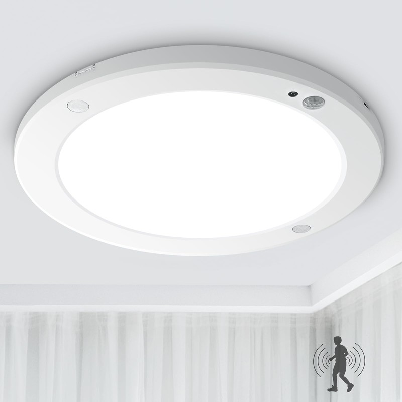 - 2 Modes Available + Widely ApplicationsMoon mode: When the indoor illuminance is less than 13lm, both the motion sensor and the light sensor can work. Sun mode: Only the motion sensor works. The flush ceiling lighting ideal for cabinet, conservatory, stairs, garage, workshop, cloakroom, hallway, lobby, porch, lounge, corridor, etc.