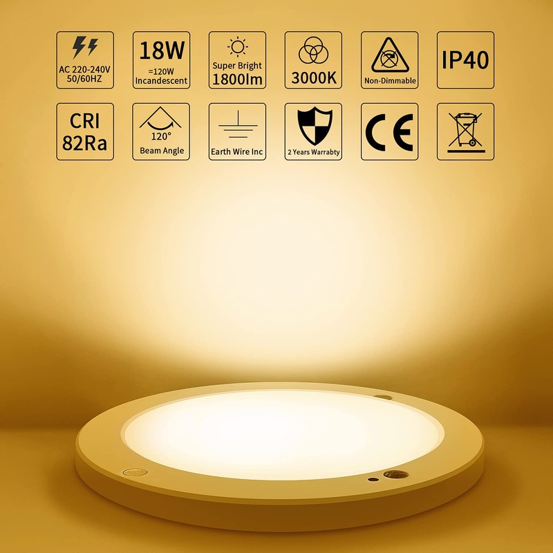 - Comfortable LampLED surface mounted ceiling light with 3000K warm white light, 120 beam angle, 82+Ra high colour rendering, creating a warm and pleasant environment for you. No flicker, protect your eyes. UKCA & RoHS certificated.