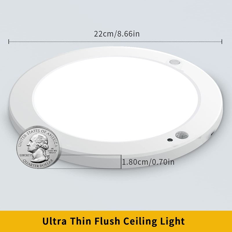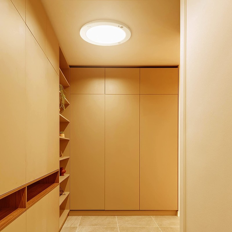 - 2 Modes Available + Widely ApplicationsMoon mode: When the indoor illuminance is less than 13lm, both the motion sensor and the light sensor can work. Sun mode: Only the motion sensor works. The flush ceiling lighting ideal for cabinet, conservatory, stairs, garage, workshop, cloakroom, hallway, lobby, porch, lounge, corridor, etc.
