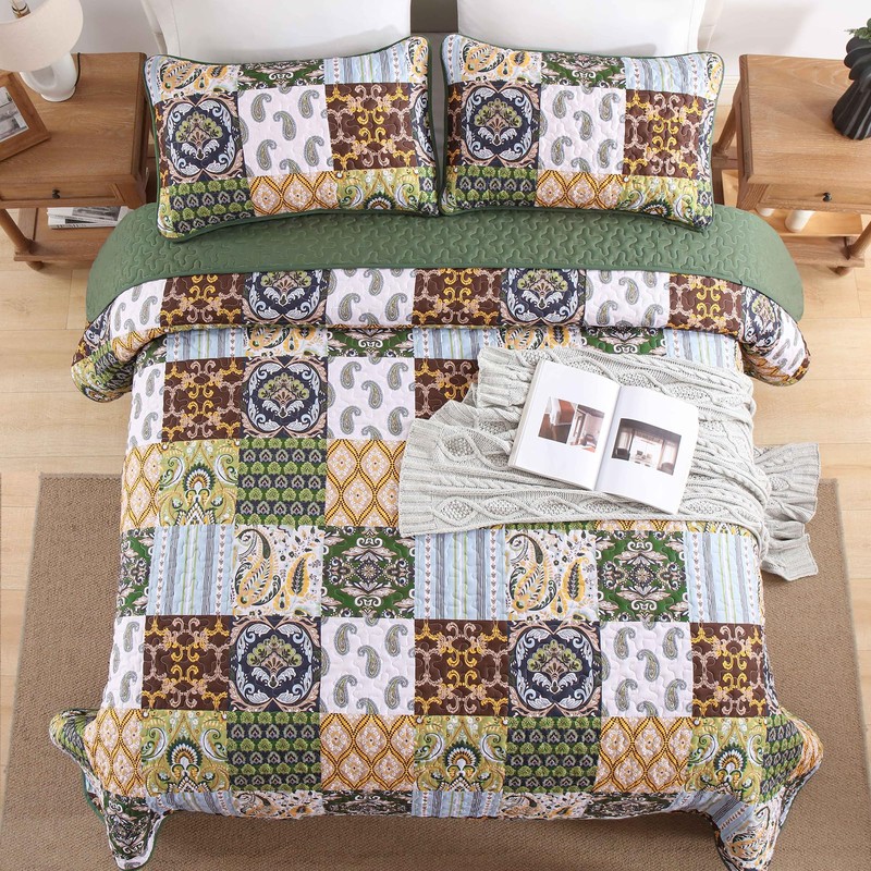 - BOHO QUILT SET: The bedspread queen set features an amazing patchwork plaid design, Combined with bohemian stripe damask and paisley pattern. This quilt bedding set will effortlessly transform your bedroom into an elegant space!