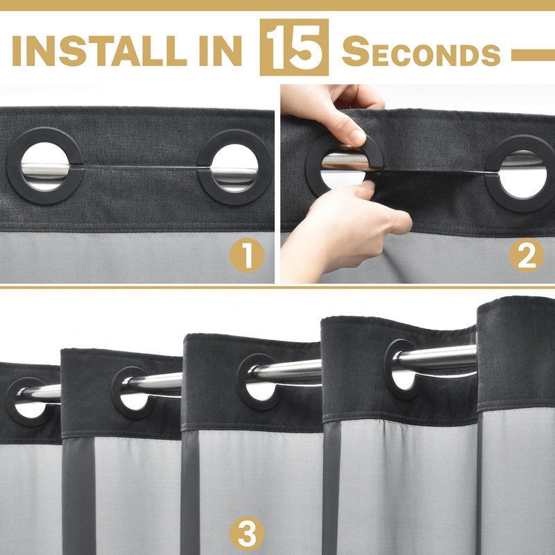 - 【Quick to Install】This bathroom shower curtain adopts a "C" built-in split ring quick and easy to install without take down the pole