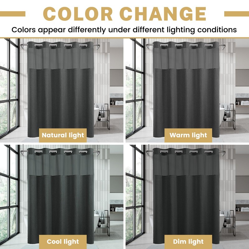 - 【No Hook Shower Curtain Set】No hooks needed design with built-in rings for easy on and off. The replaceable snap-on/off liner is easy to put up and take down and convenient to clean and replace