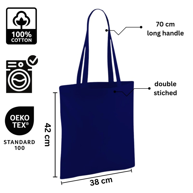 - QUALITY & DURABILITY: 38cm x 42cm, made of 100% 5oz natural cotton, lock stitching inside, with compacted stitching throughout, including cross-stitching at the handles for maximum strength allowing the bag to hold up extra bearing capacity, which is much stronger than our competitors. With two reinforced handles sized 70cm, convenient to carry in hand or wear on your shoulder, and sturdy enough for all kinds of daily use.