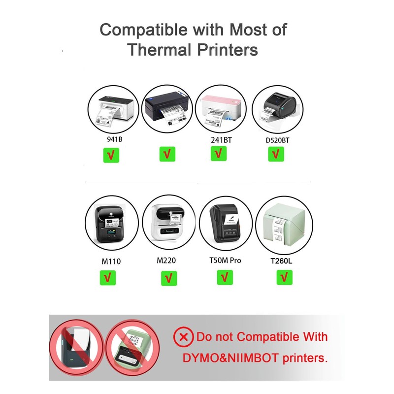- Wide compatibility: These thermal stickers work seamlessly with ROLLO, ZEBRA, MUNBYN, POLONO, Phomemo, B21, B1, M110, M220, and various other thermal label printers. (Not suitable for use with DYMO and Brother printers).