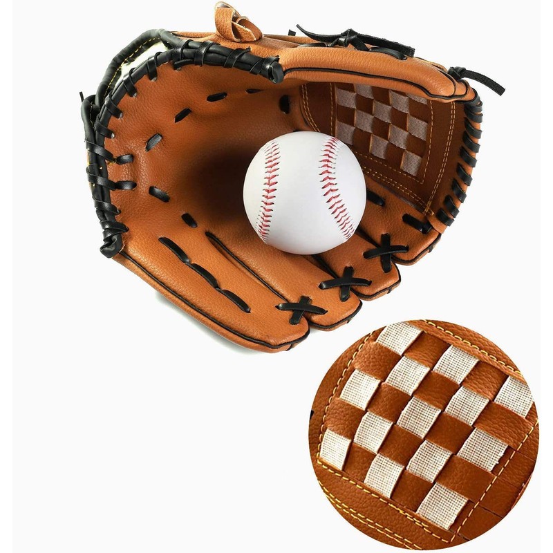 Wonninek Baseball Glove 10.5 inch Sports Batting Gloves with Baseball PU Leather Adjustable and Comfortable Right Hand Throw, Left Hand Glove (Brown, 10.5 inch)