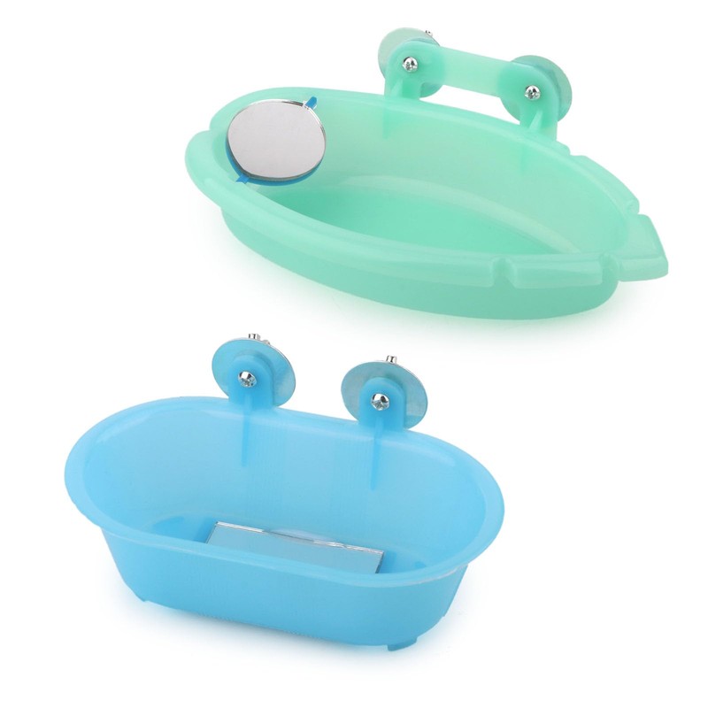 Wontee Bird Bath Box with Mirror Portable Parrot Hanging Bathroom Bathing Tub for Small Birds Cleaning Supplies (Blue(B)+Green)