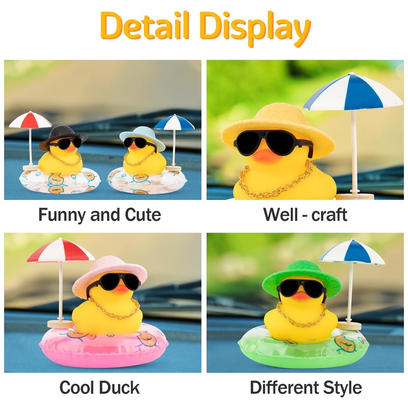 Wonuu Rubber Duck Car Ornaments Duck Car Dashboard Decorations with Straw Hat, Sun Umbrella, Sunglasses, Blue