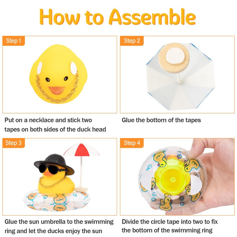 Wonuu Rubber Duck Car Ornaments Duck Car Dashboard Decorations with Straw Hat, Sun Umbrella, Sunglasses, Blue