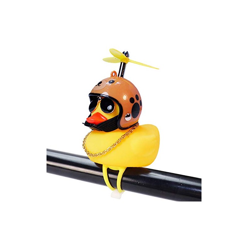 - Interesting Rubber Duck - The cute ducks are equipped with funny helmet, eyeglasses, necklace, bandage, light and double sided tape, a special and unique bike bell/car ornament to decorate our bike/car.