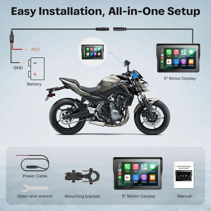- 5-Inch IPS Display Built for Riding: Crisp 5-inch IPS touchscreen with 854x480 resolution, anti-glare view, sunlight readability, glove-friendly operation, and night mode display designed for bikers