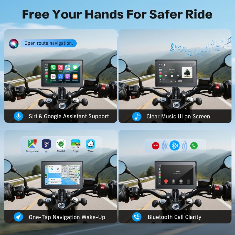 - Designed for Motorcycle Riders: Tailored for bikers with motorcycle-specific screen size, secure clamp, vibration-proof body, wide-angle view, and compact footprint for handlebars