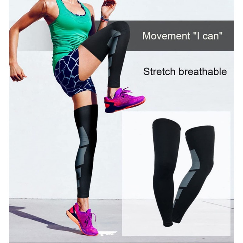 Wonzone Full Leg Sleeves Long Compression Leg Sleeve Knee Sleeves Protect Leg, for Man Women Basketball, Arthritis Cycling Sport Football, Reduce Varicose Veins and Swelling of Legs(Pair)