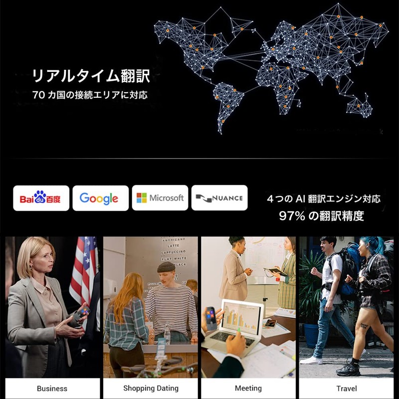 • Supports offline translation that does not require internet (supports 11 countries); *Accuracy may be reduced compared to normal online translations. When using offline function, please talk slowly and clearly