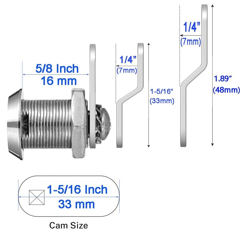 - Durable Construction – The 16mm (5/8") Cam lock are constructed of zinc alloy and are chrome plates. WOOCH cabinet locks ensure better antioxidant, waterproof and rustproof performance, resisting corrosion and wear for long-term use.