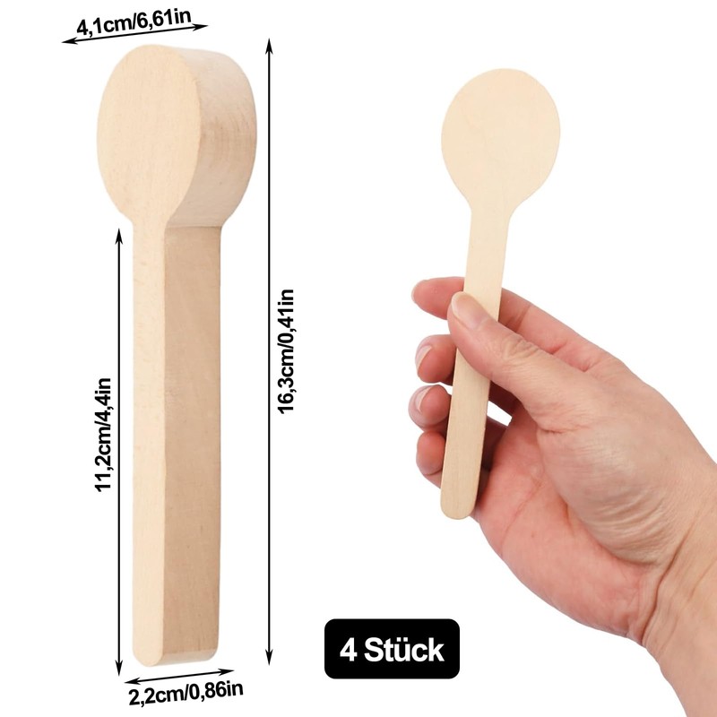 - Wooden spoon: made of beech wood, lightweight and soft, with dimensions of 16.3 x 4.1 x 2.2 cm, the ideal size for making spoons.