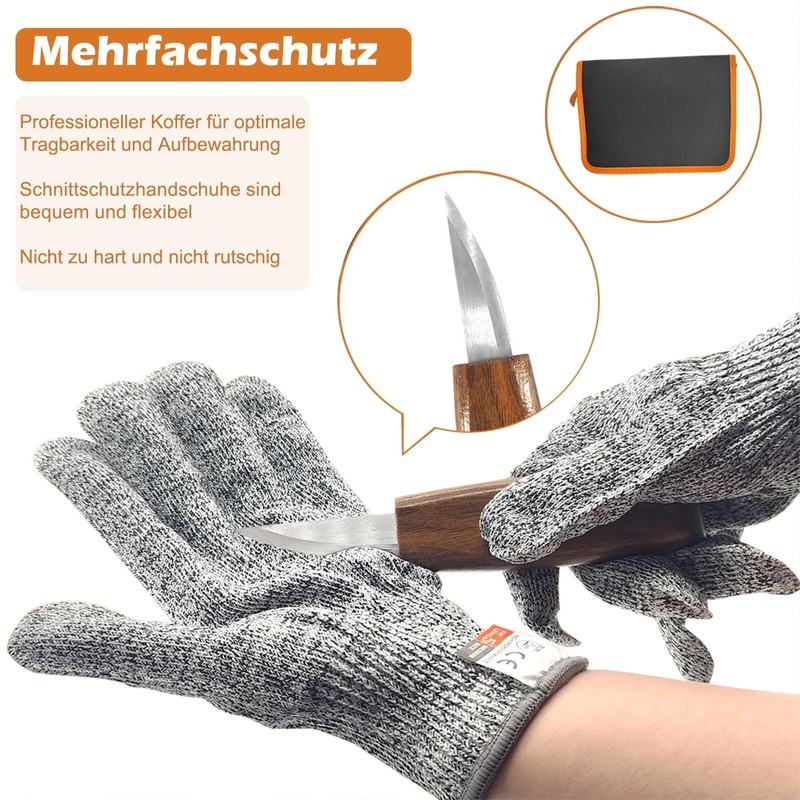 HIGH QUALITY AND PRACTICAL Includes a carving multitool, carving knife, basswood blocks, a knife cloth, cut-resistant gloves, sanding tools and a roll bag for clear storage. The carbon steel blades and ergonomic wooden handles allow precise and comfortable carving. Developed for softwoods such as lime wood, it is suitable for both beginners and experienced hobby carvers.