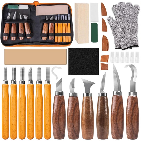 - SAFE AND COMFORTABLE CARVING - Comes with protective gloves and ergonomic handles to avoid slipping and hand fatigue. The tools are beginner friendly while providing precise control for detailed and safe carving.