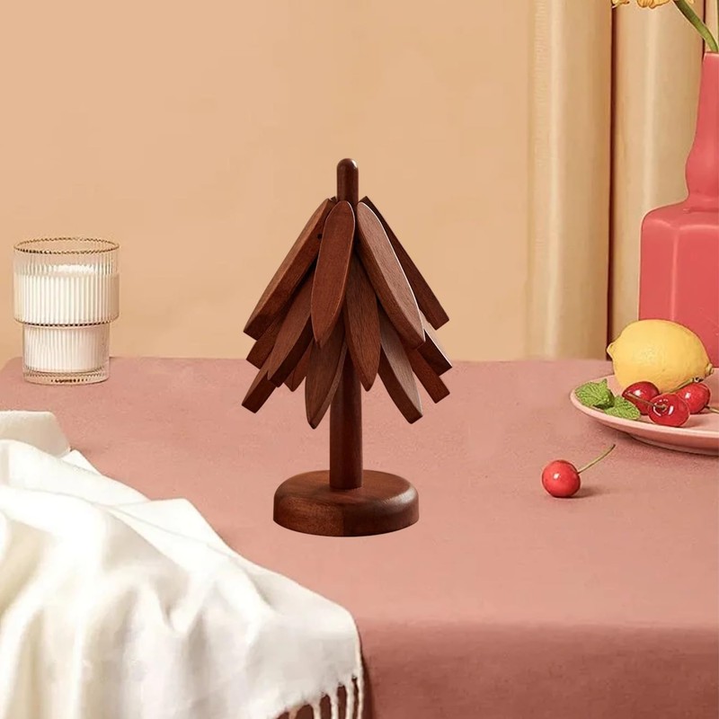 - 🥘【NATURAL WOOD】: Selected high-quality solid wood, each piece of insulating mat retains the natural texture and color of wood, environmentally friendly, healthy, safe, and harmless. The tree-shaped stacking design, inspired by the growth of trees in nature, shows the vigor and harmony of life and gives the table life and vitality.